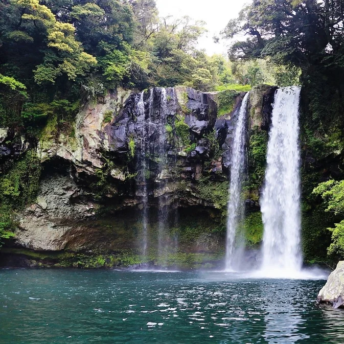 Ambas se encuentran cerca de Seogwipo, al sur de la isla. Elcaso de Jeongbang es especialmente singular, ya que es una de las pocas cascadas del país cuyas aguas caen directamente al mar, creando un paisaje único donde el agua dulce se encuentra con el océano.