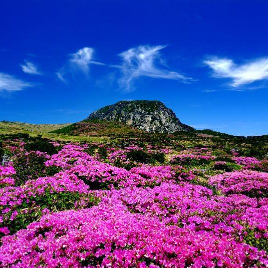 Se encuentra en el centro de la isla, el Monte Hallasan es el volcán más alto del país y el corazón natural de la isla.