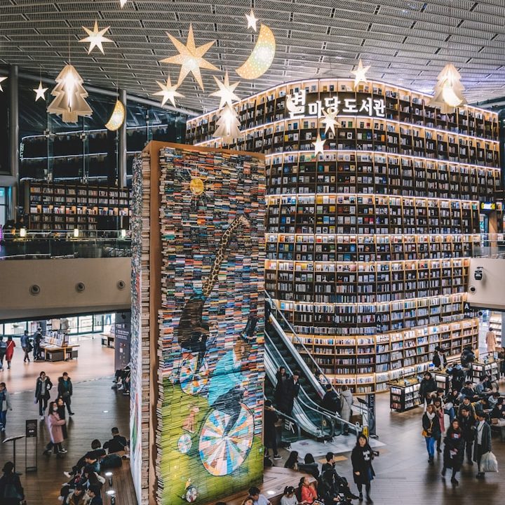 La librería Byeolmadang, más conocida como Starfield, se encuentra en el complejo comercial Strarfield COEX (o COEX Mall), en el distrito de Gangnam. Especial famosa por ser escenario de numerosos k-dramas.