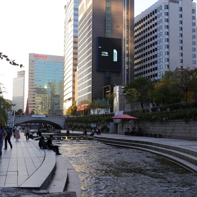 Literalmente es un arroyo en medio de la ciudad, con una extensión de casi 11km, cruza Seúl de oeste a este.